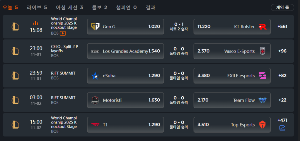 → into88에서는 ‘1세트 퍼스트블러드 + 젠지 승리’ 조합 추천